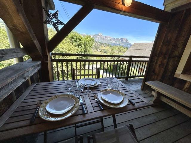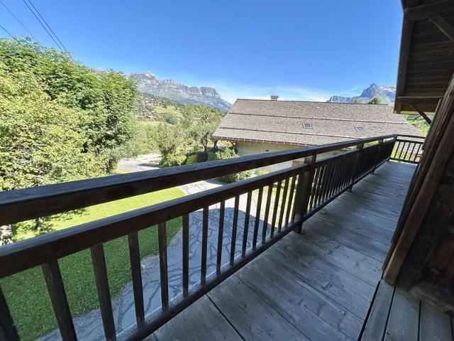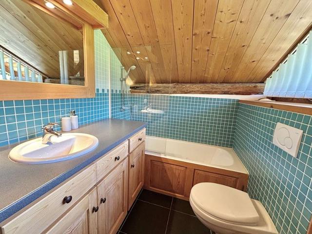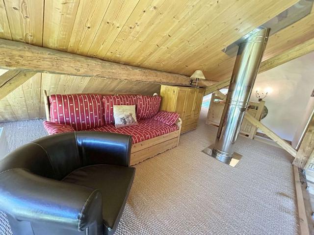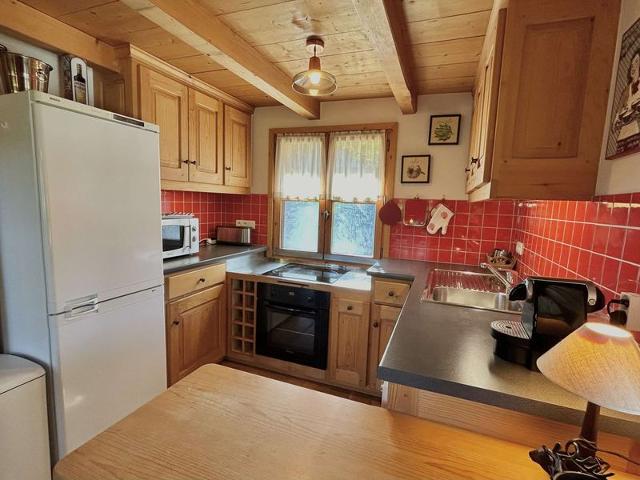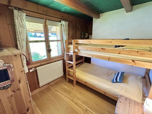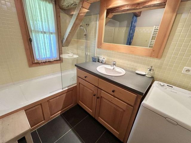 L'appartement au 1er étage d'un chalet individuel est composé d'un hall d'entrée avec placards/penderie, d'un wc séparés avec lave-mains, d'une chambre cabine avec 2 lits superposés (90 x 190), placard, d'une salle de bains avec lave-linge séchant, d'une chambre avec 1 lit 2 places (160 x 190), placard, d'un séjour/salon avec cheminée (non fonctionnelle), Télévision - accès Terrasse Sud et d'une cuisine américaine équipée.