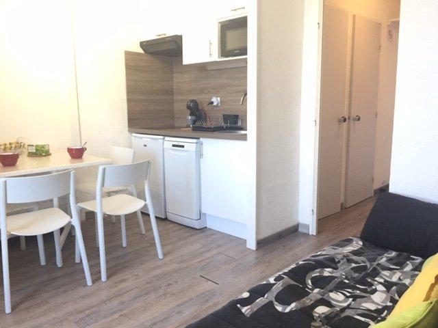 Situé dans une résidence en pied de pistes, et au calme, à quelques pas de la rue commerçante, cet appartement lumineux s'organise autour d’une entrée, d’une salle d'eau avec des WC indépendants, d’une kitchenette ainsi que d’un séjour avec convertible clic clac, et d'une cabine avec deux lits superposés.