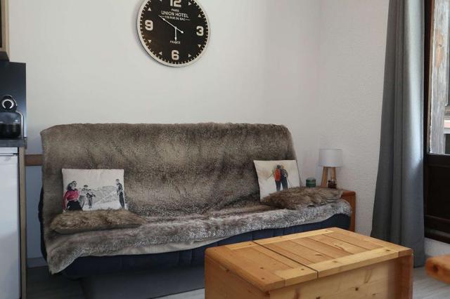 Très joli studio 4 personnes exposition Sud-Est vue sur les pistes, 4 ème étage avec ascenseur entièrement refait à neuf, comprenant une entrée avec 2 lits superposés 1 place, un séjour avec 1 banquette convertible 2 places, un coin cuisine ouvert sur le séjour, une salle d'eau avec WC, balcon exposition Sud-Est. Idéalement situé au coeur de la station, départ et retour skis aux pieds de la résidence, accès direct aux activités et commerces.