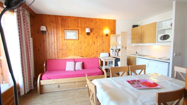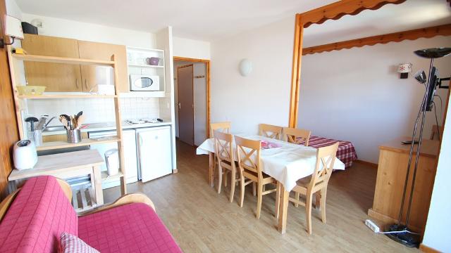 - Cuisine équipée : lave vaisselle, 4 plaques électriques, mini four, micro-onde, bouilloire, cafetière, grille pain. Séjour comprenant une banquette gigogne (non convertible), balcon sud-est surplombant la résidence avec vue pistes