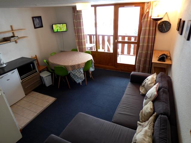 La résidence :Résidence de LA PETITE OURSE A. 1650 m d'altitude, Vallandry, quartier des RochesRésidence datant des années 80 en balcon sur la vallée.Au calme, à 250 m par chemin piétonnier en amont du centre de Vallandry.Hiver : à 150 m des pistes de ski. 250 m en amont du télésiège principal. retour en ski possible suivant enneigement.Été : à 300 m de la forêt, au départ de randonnées sur le versant adret.Coursives extérieures au nord-est. Tous les logements donnent au sud ou à l' ouest.Résidence étagée dans la pente. 4 étages sans ascenceur.Casiers à ski. parking public à 100 mLe logement :Agréable duplex 40 m² + espaces en sous pente 10 m². 2 chambres + coin montagne + balcon indépendant. Orienté sud ouest, ensoleillé, belle vue dégagée sur la montagne.niveau +1 par rapport à l'entréeRez de chaussée : séjour (moquette) avec baie vitrée donnant sur le balcon, coin salon avec un canapé convertible, télévision, coin repas avec table à manger, cuisine ouverte avec 4 plaques chauffantes, mini four grill, lave vaisselle, frigo, évier 1 bac, cafetière électrique, grille pain électrique.Une salle de bain avec lavabo baignoire. Un Wc séparéà l'étage : espaces de couchages tous en sous pente avec vélux.Deux chambres cabines avec lits doubles, un coin montagne ouvert avec 2 lits superposés, une salle d'eau avec lavabo, douche WC.Casier à ski à l'étage. Parking public à 50m.animaux non admis.