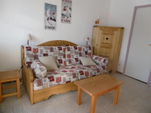 - Séjour avec coin repas, clic-clac 2 pers. en 140 cm, TV, volet roulant électrique - Coin montagne avec 2 lits superposés.