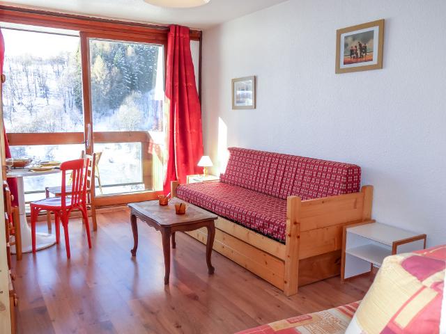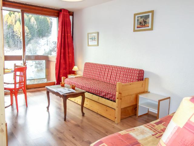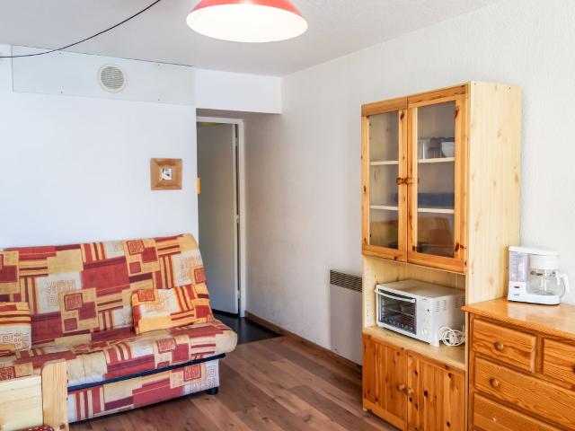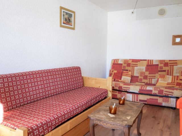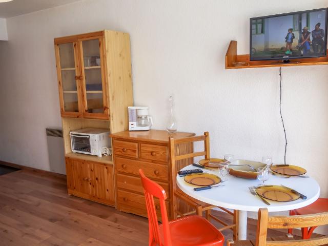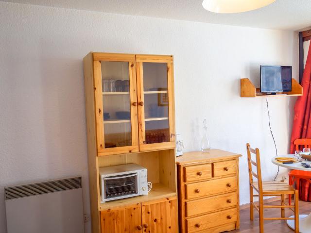 Studio 22 m2 au 13ème étage. Séjour/salle à manger avec 2 lits (80 cm), 1 divan-lit double et TV. Coin cuisine dans l'entrée (2 plaques de cuisson, mini-four). Bain/WC. Sol en parquet. Balcon, situation sud. Vue sur les pistes de ski. A disposition: Internet (Connexion WIFI, gratuit). Veuillez noter: logement pour non fumeurs. Détecteur de fumée.