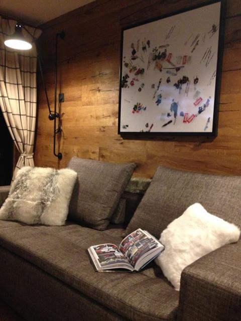 Coin salon avec 2 canapés pour 6 personnes, cheminée éthanol, station d'accueil hifi iphone/ipad, TV led + lecteur dvd. Jeux de cartes, Bande dessinées...