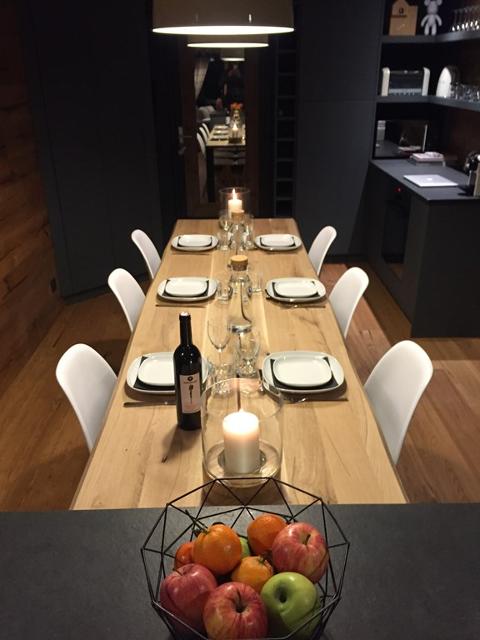 Cuisine tout équipée avec grande table de repas pouvant accueillir 6/10 convives. Lave vaisselle, plaques induction, four chaleur tournante, robot multifonctions, nespresso, grille pain, bouilloire, raclette, fondue, pierrade...