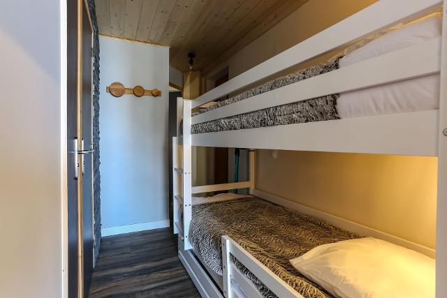 D'une surface d'environ 27 m2, pour 4 personnes, vous avez à l'entrée, deux lits superposés, une chambre avec un lit double. Dans le séjour, vous avez un canapé confortable, une table à manger avec chaises hautes, un écran plat, une cuisine équipée d'une plaque de cuisson, hotte filtrante, réfrigérateur, lave vaisselle, lave linge.