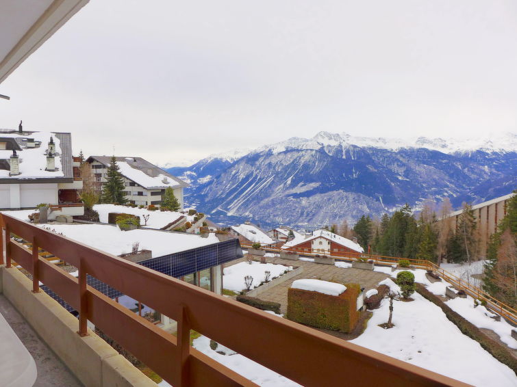 Maison en terrasse "Terrasse des Alpes". Dans le quartier de Marigny, à 400 m du centre de Montana, situation ensoleillée, orientée sud-ouest. En commun: piscine couverte chauffée (12 x 5 m, disponibilité saisonnière: 01.Jan. - 20.Nov. et 03.Dec. - 31.Dec. horaires d'ouverture de la piscine: 08:00-20:00). Bain à remous , terrasse. Infrastructures de la Maison: salon, ascenseur, local pour les skis, chauffage central, lave-linge, sèche-linge (en commun, en sus). Magasins, supermarché, restaurant, bar, café 400 m, arrêt de bus "Montana Poste" 300 m. Terrain de golf (18 trous) 3.8 km, remontées mécaniques 1.5 km. Les lacs connus sont facilement accessibles: Lac de la Moubra 1.5 km. Veuillez noter: ski-bus gratuit. Piscine (environ 26°) et bain remous fermés en novembre. Bain à remous à partir de 16 ans. L'immeuble est construit sur un terrain incliné. Les étages sont à considérer comme niveaux (calculés au départ des terrasses du fond de la résidence). En cas de fortes chutes de neige, il n'est pas autorisé sur l'ordre de l'administrateur de déblayer les terrasses.