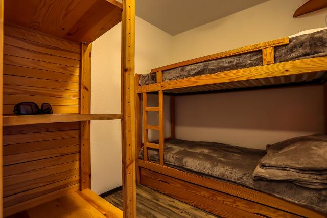 En entrant dans les lieux, vous avez sur votre gauche, la salle de bains avec lavabo et baignoire, puis les toilettes qui sont séparés. Sur la droite, une cabine avec deux lits superposés, un placard pour ranger les vêtements. Les lits sont équipés d'oreillers et couvertures.