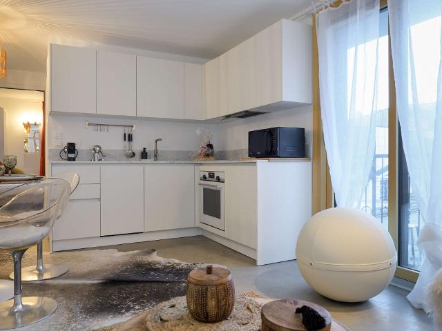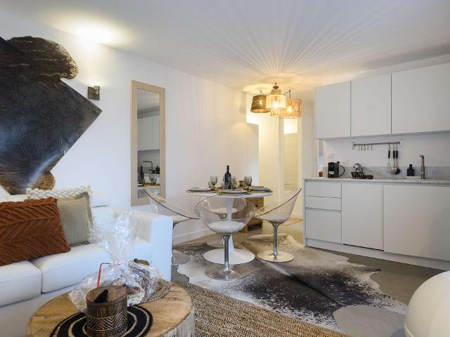Appartement chaleureux entièrement rénové avec une décoration soignée, à côté de tous les restaurants et commerces. Un cocon au centre de la station.