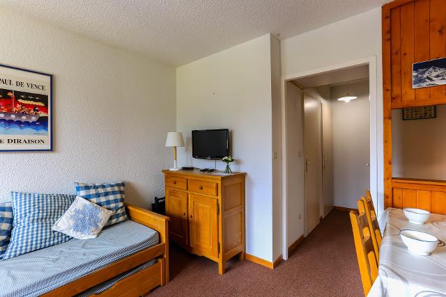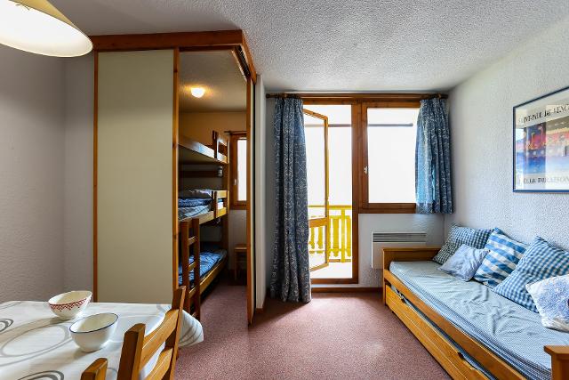 La surface de cet appartement est d'environ 31 m2 est composé d'une entrée, sur la droite une chambre avec 1 lit double, ensuite les toilettes séparés de la salle de bains, en face la kitchenette équipée. Vous arrivez ensuite dans le séjour lumineux avec accès au balcon. Dans le séjour vous avez le coin cabine avec les 2 lits superposés. Les draps et serviettes ne sont pas inclus.