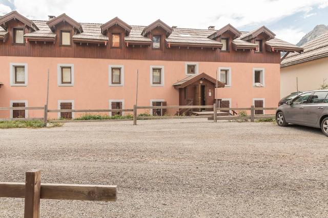 Cette location dispose d’une terrasse exposé sud sur le parking attenant à la résidence.