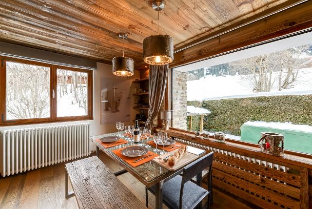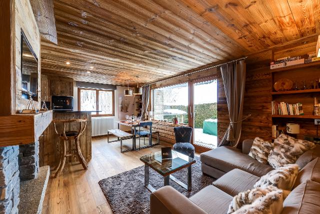 Un appartement de 90m2 comme un petit chalet, avec une terrasse donnant directement sur les pistes. Décoration montagnarde moderne et chaleureuse : un vrai cocon familial à 500 mètres du centre de Megève. Trois chambres. Peut accueillir jusqu’à 8 personnes.