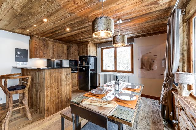 L’appartement est un petit bijou de décoration montagnarde contemporaine, avec un aménagement intelligent qui conviendra parfaitement à deux couples avec enfants. Situé au premier étage, sa terrasse entourée d’une haie se trouve à hauteur de la piste.