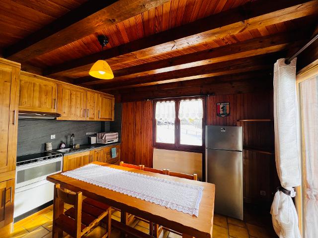 Chalet de style savoyard et soigné. Quartier des Hauts Lieux situé rue des prés. Vue panoramique. Centre 500m, navette gratuite et pistes alpin aux pieds du chalet.
