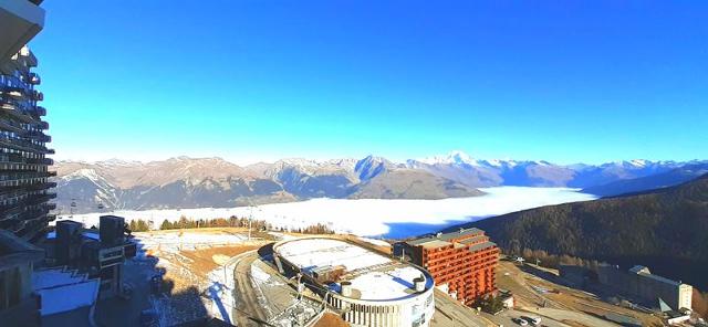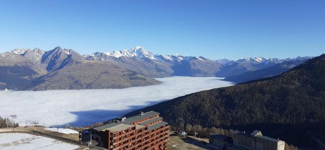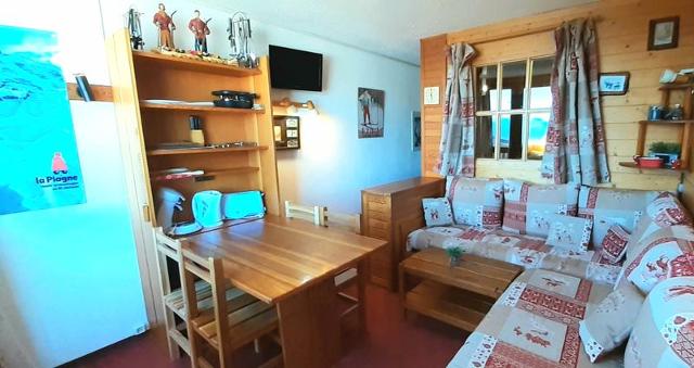 AIME LA PLAGNE – RESIDENCE CHAMOIS. Studio cabine décoré avec soin et bénéficiant d'une vue magnifique sur le Mont Blanc et la Vallée de la Tarentaise. La Résidence, située au centre de Aime La Plagne, offre un emplacement idéal sur les pistes et une galerie commerciale.