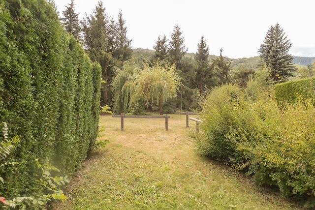 Depuis le salon, équipé de la TV, on accède à la terrasse sud avec son mobilier de jardin