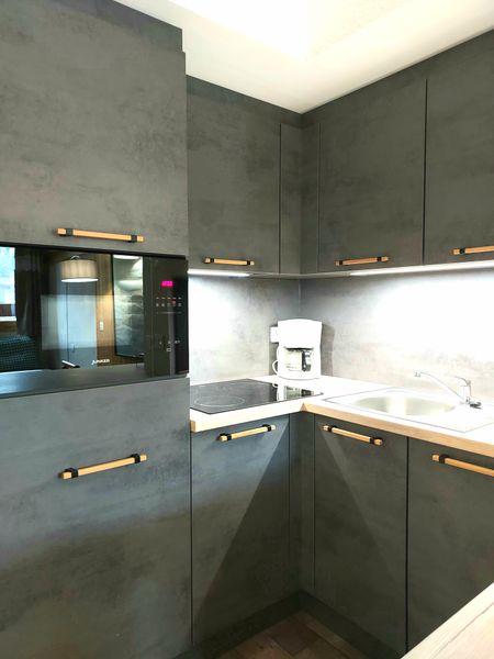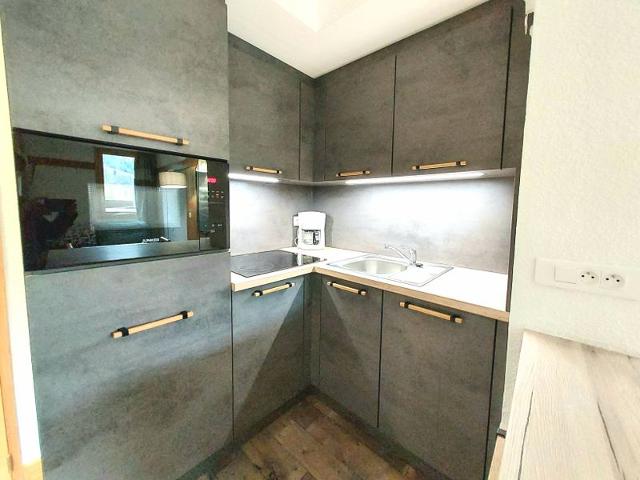 -La cuisine, ouverte sur le séjour, est équipée de tout le confort nécessaire (plaques vitrocéramiques, combiné micro-ondes, lave-vaisselle...)