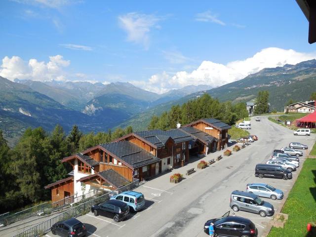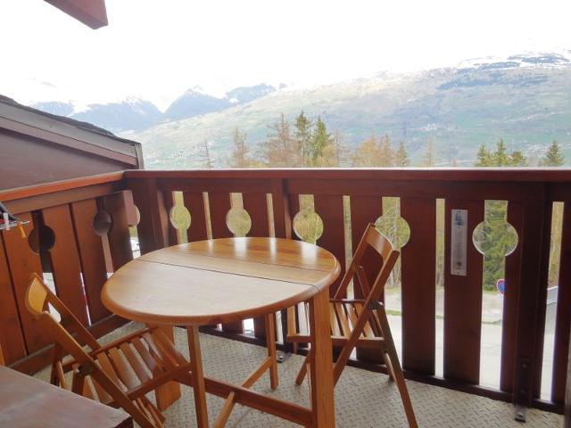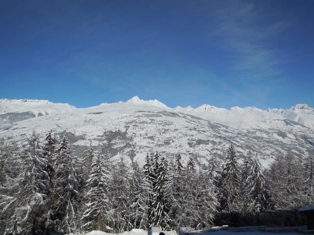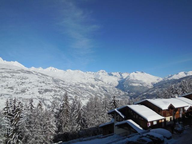Le balcon avec vue sur le Mont Blanc est exposé Nord. Le casier à skis est dans la résidence.