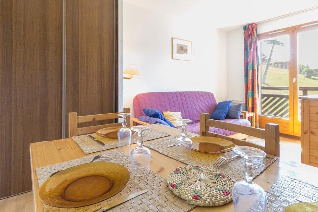 Résidence sans ascenseur située sur les pistes, proche des commerces et remontées mécaniques.