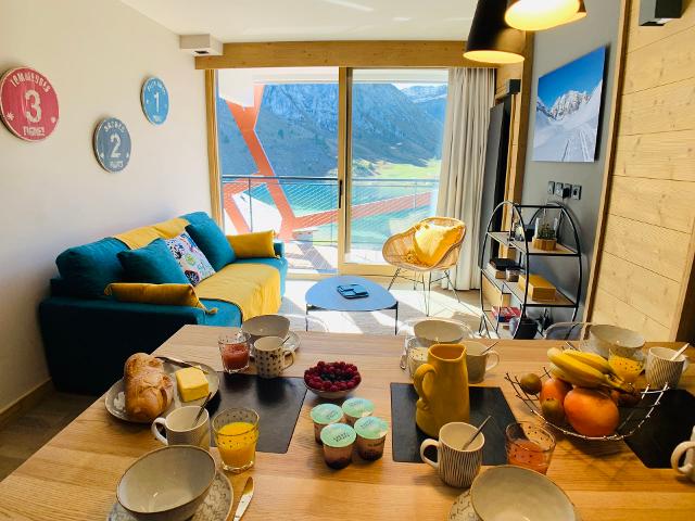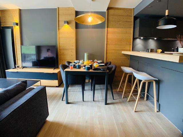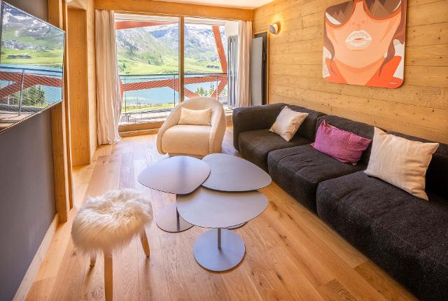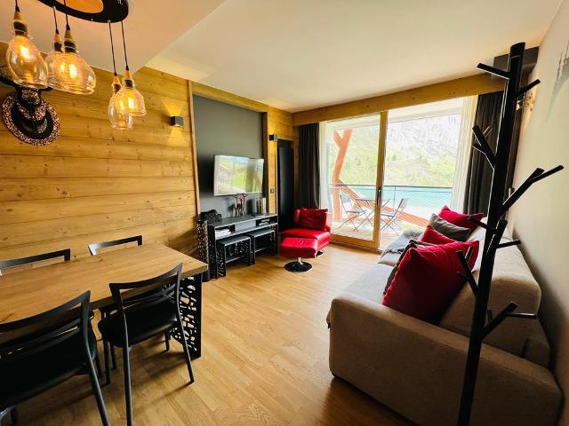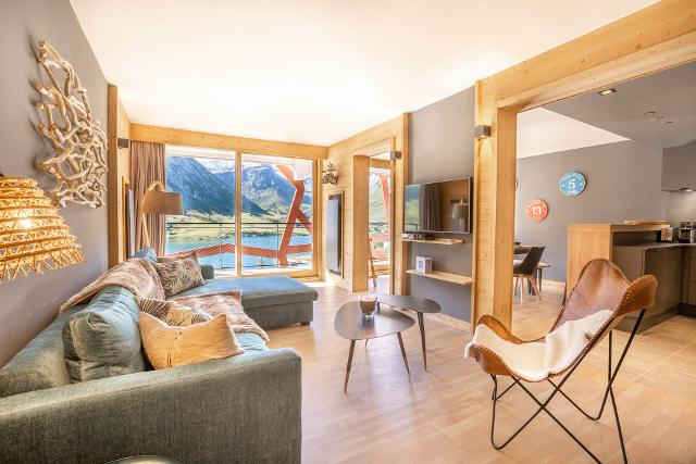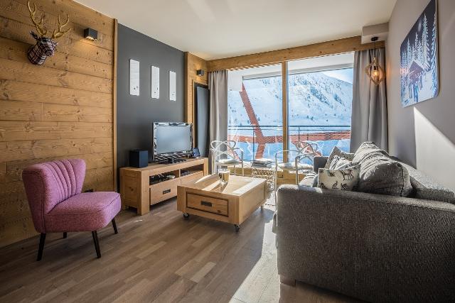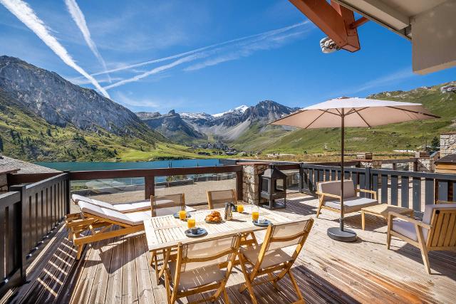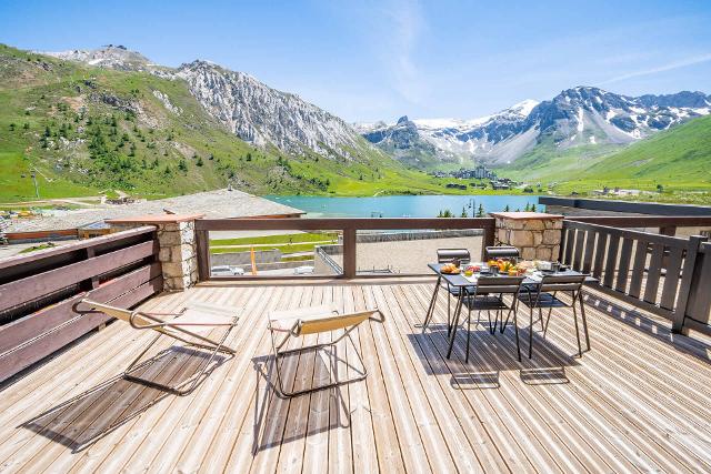 Appartement en cœur de station à moins de 50 mètres des pistes. Appartement avec une terrasse plein sud qui offre la vue sur le lac.