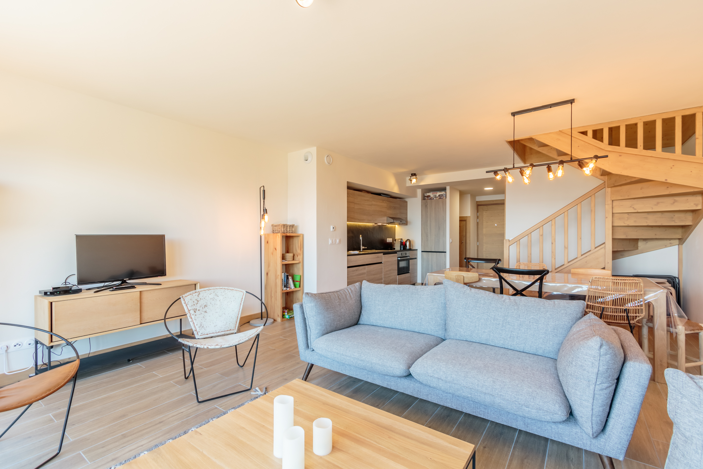 - 1 grand séjour avec terrasse, équipé d'une TV connectée