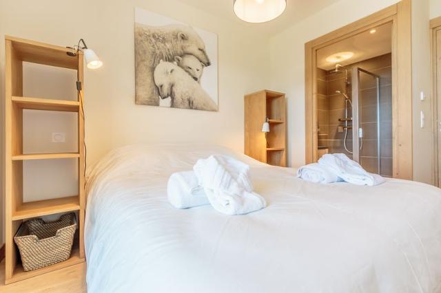 Décoration cosy et contemporaine, finitions intérieures haut de gamme. Situé au 1er étage avec ascenseur. Lits faits à l'arrivée. Linge de toilette inclus. 2 places de parking couvertes incluses (hauteur max 2m05). WIFI. Casier à ski avec accès direct aux pistes. Chauffage au sol. Accès à l’espace bien-être avec piscine intérieure, sauna, hammam et salle de sport.