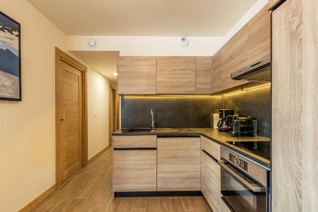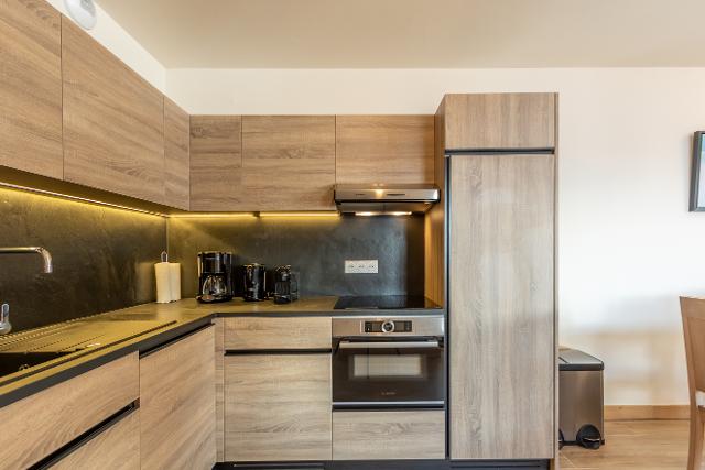 - 1 cuisine ouverte sur le séjour avec bar (plaques induction - lave-vaisselle - four/micro-ondes combiné - réfrigérateur - cafetière filtre - cafetière Nespresso - bouilloire - grille-pain, appareil à raclette et fondue),