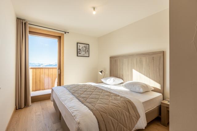 LES ARCS 1600 - Résidence de standing 4* avec PISCINE et SPA ! PIED DE PISTES ! Magnifique 4 pièces + coin montagne de 95 m² pour 8/10 personnes, offrant une vue panoramique exceptionnelle sur la piste, la vallée et les massifs enneigés. Exposition SUD / SUD OUEST. Equipé PMR.