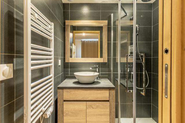 - 1 chambre en suite avec 1 lit double 160*200 et salle de douche avec sèche-serviettes,