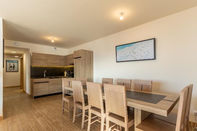 Décoration cosy et contemporaine, finitions intérieures haut de gamme. Situé au 3ème étage avec ascenseur. Lits faits à l'arrivée. Linge de toilette inclus. 1 place de parking couverte incluse (hauteur max 2m05). WIFI. Casier à ski avec accès direct aux pistes. Chauffage au sol. Accès à l'espace bien-être avec piscine, sauna, hammam et salle de sport.