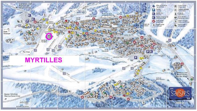 Centre ville à 400 m. Commerces à 300 m. ESF à 100 m. Chalet au milieu des pistes, sous l'école de ski ESF. En hiver, accès piétons sur 100m à travers les pistes. Parking stationnement véhicule à 200m. Commerces 300m.