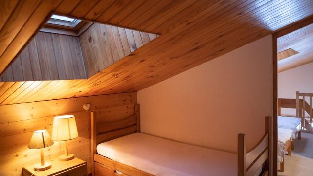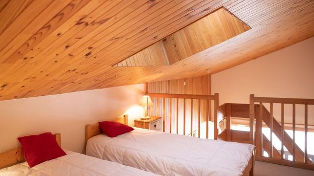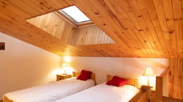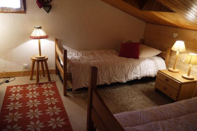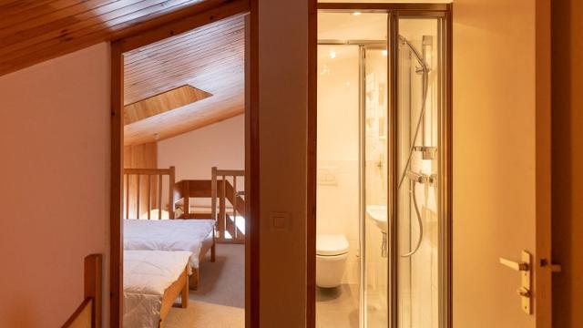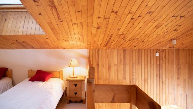A l'étage, deux lits simples sur la mezzanine (80x190). Chambre mansardée contenant 2 lits simples et un lit tiroir (80x190). Salle de douche avec WC. Appartement non-fumeur. Animaux non admis.