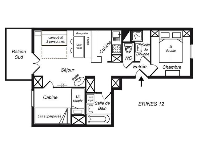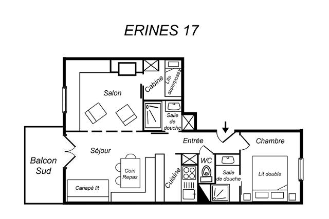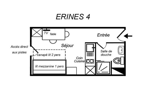 Situation : Centre ville à 350 m. Commerces à 400 m. ESF à 500 m. Pistes à 50 m.