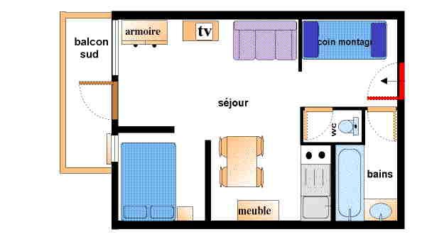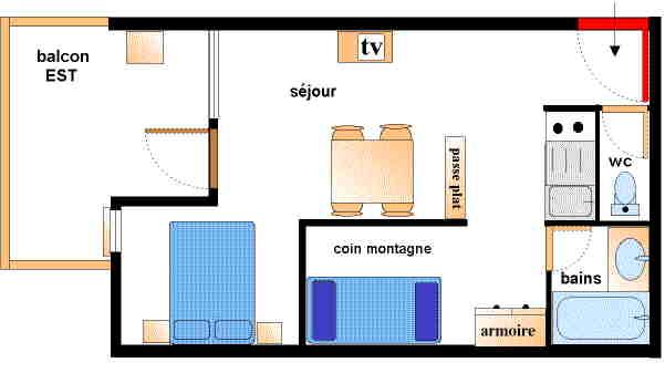 Situation : Centre ville à 200 m. Commerces à 200 m. ESF à 100 m. Pistes à 100 m.