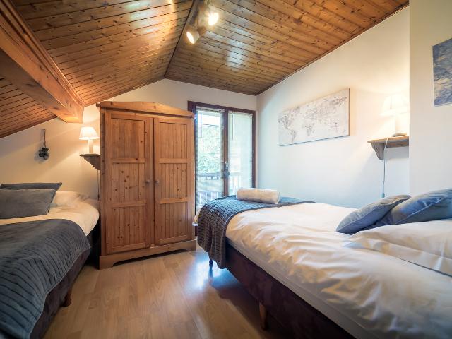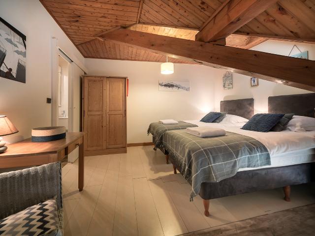 Niveau 1: Une chambre avec 2 lits simples et placard, balcon. Une seconde chambre avec 1 lit double, un placard, une salle de douche avec, lavabo et wc,