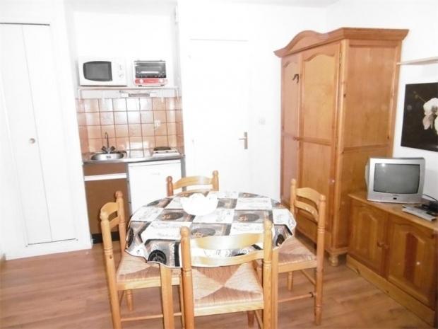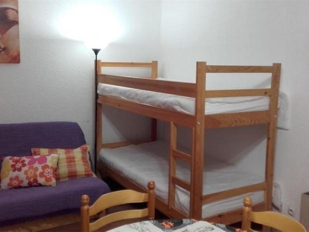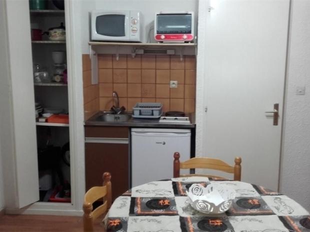 Studio de 17 m² + balcon exposé Nord-Ouest vue forêt, entrée directe dans le séjour avec convertible 2 personnes type lits gigognes + 2 lits superposés, téléviseur, coin cuisine équipé (2 plaques chau . . .