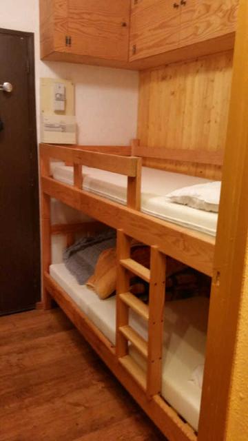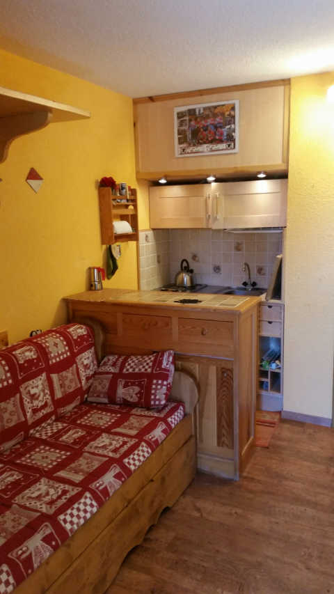 Résidence Central Station studio N° 05 en rez-de-chaussée. Coin nuit 2 lits superposés 1 pers. Séjour 1 canapé lit 2 pers. - Balcon Ouest, salle d'eau avec baignoire sabot, lavabo et w.c - Parking à proximité - Casier à skis sur le palier - Résdience située à 250 m des pistes et à 100 m des commerces .