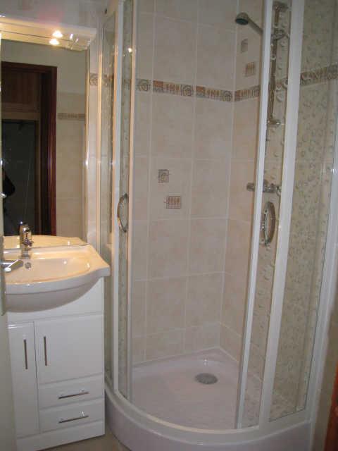 Cuisine équipée avec plaques vitrocéramiques, four, four micro-ondes, lave vaisselle, réfrigérateur.