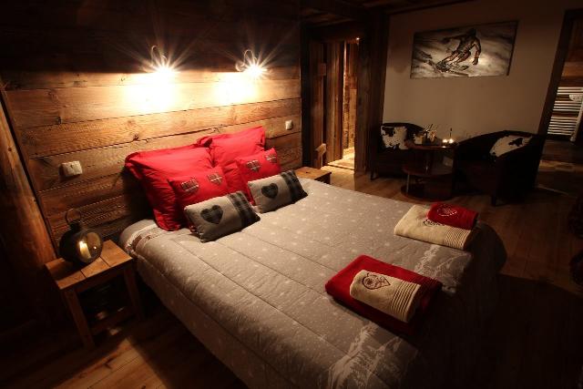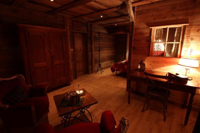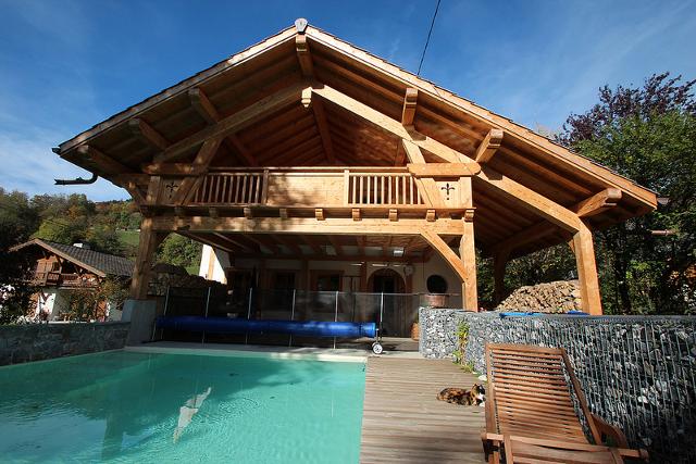 A 100 mètres du village, le chalet Douglas, vous invite à séjourner, dans son décor en vieux bois, classé 5 * pour 7 personnes, dans un confort exceptionnel : salle de bains, toilettes et TV écran plat dans toutes les chambres.