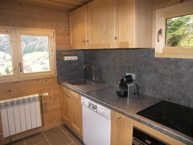 - CUISINE (5.80 m²) : réfrigérateur+congélateur (250 L), four, machine NESPRESSO, TABLE VITROCERAMIQUE, MICRO-ONDES, LAVE-VAISSELLE, petite fenêtre nord, vue espaces verts, fenêtre ouest, vue station / montagne