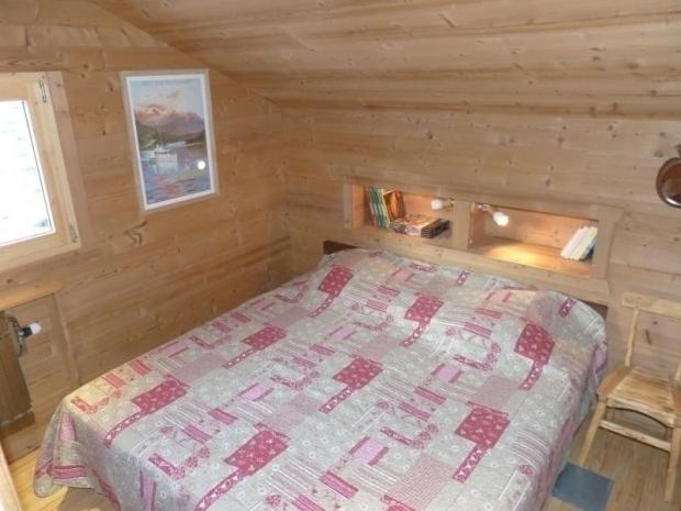 - CHAMBRE (8.95 m²) : 2 LITS 1 PLACE (80), petite fenêtre est, vue arrière du chalet, route du Crêt du Merle