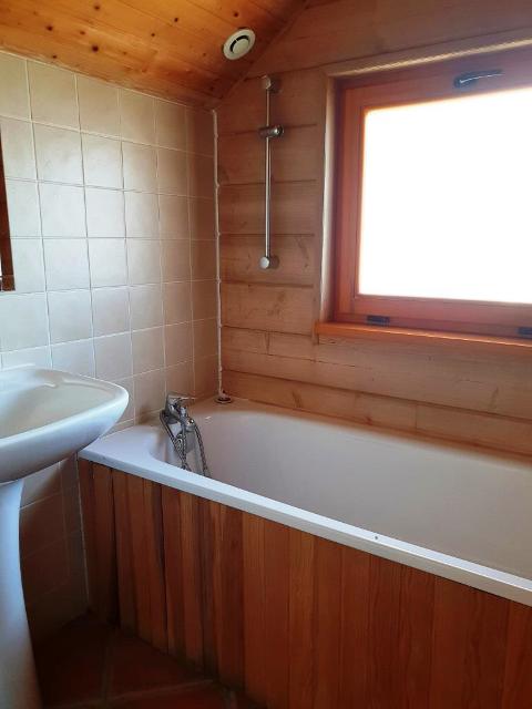 Chalet 12 personnes (92 m²) : une terrasse en rez-de-chaussée, séjour avec coin repas (table, 8 chaises, un banc, canapé-lit gigogne deux couchages, un poêle, TV écran plat), une chambre avec lit double et une chambre avec lits jumeaux, salle de bain, toilettes séparées. Au premier étage, deux chambres dont une avec un lit double et l'autre avec lits jumeaux et lits superposés ou lit tiroir), salle d'eau avec toilettes.
