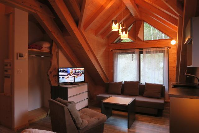 Commerces à 80 m. ESF à 300 m. Mer à 650 m. Pistes à 80 m. Lac à 150 m. Gare à 17 Km. HIVER