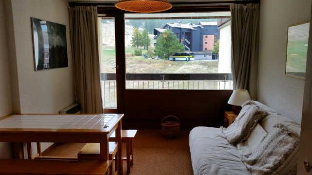 Appartement N°406 2 pièces + coin nuit 6 personnes 40 m² exposition Sud/Est avec 2 balcons au 4ème étage avec ascenseur comprenant dans le séjour un canapé lit 2 pers., une chambre avec un lit pour 2 personnes en 140cm, un coin montagne avec 2 lits superposés 1 personne, coin cuisine avec mini-four, lave-vaisselle, plaques électriques,frigo.Salle de Bains avec baignoire et wc séparés.Sol moquette. Parking extérieur privatif. Résidence située sur les pistes et à 500 m du centre du village et de l'ESF.