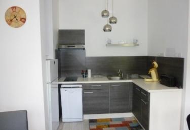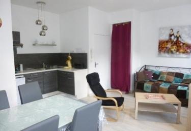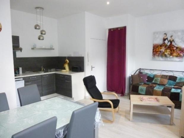 entrée directe dans séjour salon , banquette 2 lits gigognes en 90 cm, TV écran plat, Coin cuisine intégré et équipé. 1 chambre : 1 lit en 140 cm. salle de douche. WC séparé.