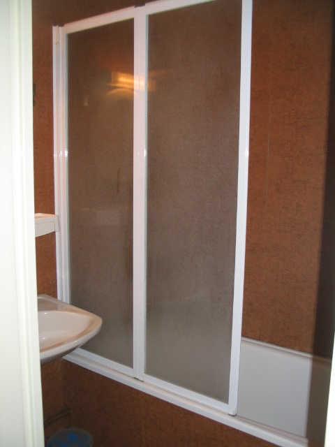 Canapé clic-clac pour 2 personnes au séjour avec télévision et un lit 1 personne dans un coin nuit.