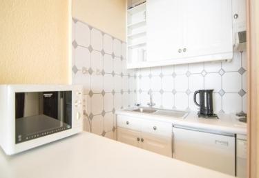 Cuisine : plaques électriques, micro-ondes, four, réfrigérateur et lave-vaisselle.