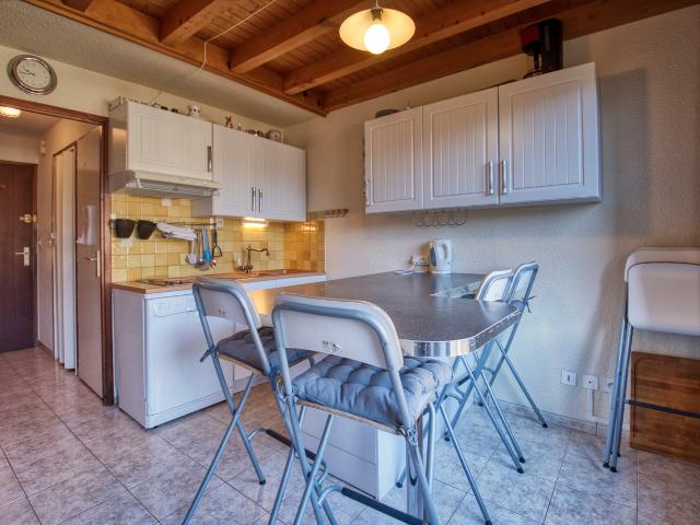 Appartement duplex environ 31m²,situé au 1er étage et prévu pour 6 personnes : coin montagne avec lits superposés (le couchage en hauteur ne convient pas à des enfants de moins de 6 ans),Salle de bain, wc, séjour avec coin-cuisine équipé