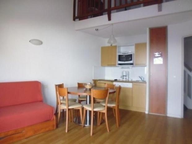 Duplex 7 couchages situé au 2ème étage sans ascenseur (accès par escalier niveau -1), surface de 49 m² avec terrasse, exposition sud. En RDC, Séjour équipé d?une télévision, d?un canapé lit en 160, une chambre avec 1 lit en 160, salle de bains, toilettes séparés. A l'étage, un lit en 90cm sur la mezzanine, une chambre avec 2 lits en 90cm une salle d'eau avec toilettes. Coin cuisine dans séjour avec plaques vitro céramiques, micro-ondes multifonctions, cafetière à filtre, frigo, bouilloire, lave vaisselle. Sol en parquet. Casier à ski en RDC. Emplacement de parking intérieur n°42.