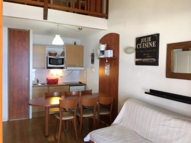Duplex 7 couchages situé au 2ème étage sans ascenseur (accès par escalier niveau -1), surface de 49 m² avec terrasse, exposition sud. En RDC, Séjour équipé d?une télévision, d?un canapé lit en 160, une chambre avec 1 lit en 160, salle de bains, toilettes séparés. A l'étage, un lit en 90cm sur la mezzanine, une chambre avec 2 lits en 90cm une salle d'eau avec toilettes. Coin cuisine dans séjour avec plaques vitro céramiques, micro-ondes multifonctions, cafetière à filtre, frigo, bouilloire, lave vaisselle. Sol en parquet. Casier à ski en RDC. Emplacement de parking intérieur n°42.